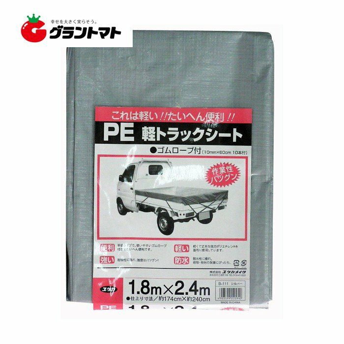 PE軽トラックシート B-111 シルバー 1.8m×2.4m ゴムロープ10本付 ユタカメイク