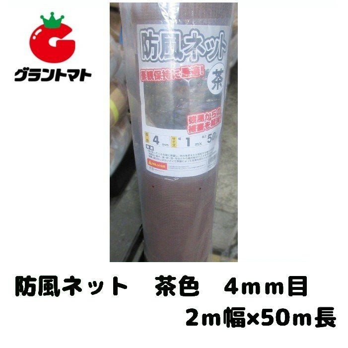 防風ネット茶 4mm目合い 2m×50m ハウスや田畑の強風対策(防風網) シンセイ
